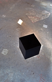 a cube reminding a black box is put into a large industry hall. at the top of the cube there is a spyhole which makes the visitor look at an arrangement of sleeping angels. this arrangement is being placed 11 meters below the floor on which the spectator is standing. most of the spectators don’t believe they are looking so deep. maybe subconciously they seem to prefer to believe they are being presented an optical illusion on a solid floor, rather then knowing the truth, that there may be some gap where they wouldn’t expect it to be.