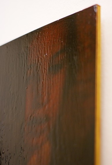 241208 on planet earth - wall object by STEPHANA SCHMIDT, 2009plastic film on wood, covered with shellack 27,9x26,6 cm each, 94,6x90,6 total